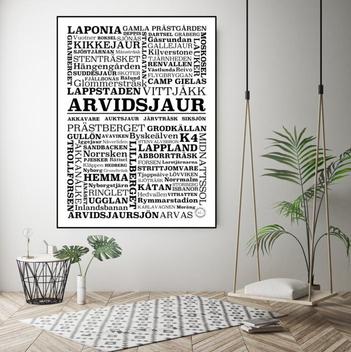 En poster med bostadsområden & ställen i Arvidsjaur.
